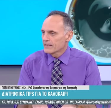 He has been a scientific consultant on nutrition at Mega, Ant1, Net, Alpha, with weekly presentations, and has written about nutritional issues in recent years in many magazines and newspapers.