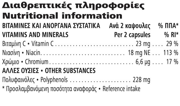 *Vitamin B3 and vitamin C contribute to the normal functioning of metabolic processes aimed at energy production and the reduction of tiredness and fatigue, while Chromium contributes to the normal metabolism of macronutrients.